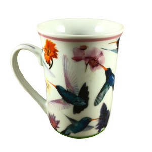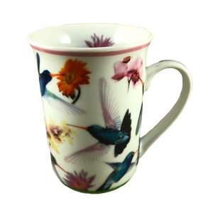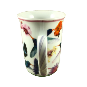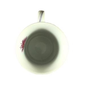 Also features a flower inside the mug towards the rear upper surface and a decorated handle.