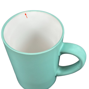 Copy 1: This mug is pre-owned and reconditioned. This mug has no chips, cracks, scratches, stains or crazing. The paint on the rim on the front surface was applied heavily resulting in a drip like appearance, please see the first photo.