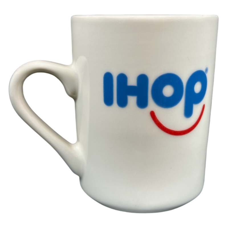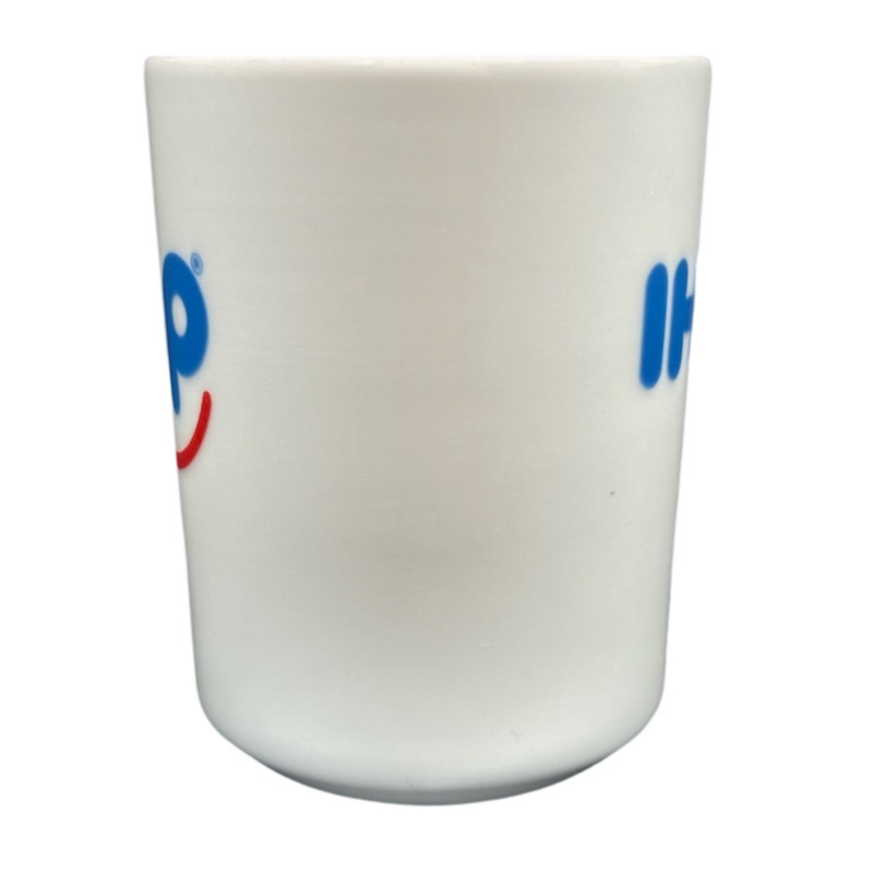 Features "IHOP" printed in large blue letters on its front and rear surface.
