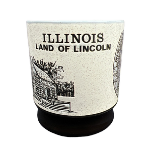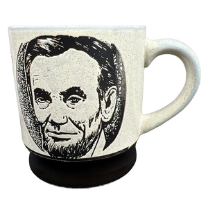 This vintage mug features beautiful artwork depicting Abraham Lincoln's face etched into its front surface.