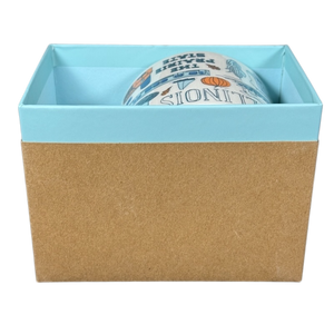 Copy 2: This mug appears unused with its original sticker still on its bottom surface and in its original box. This mug has no chips, cracks, scratches, stains or crazing. The box is in very good condition with some minor creasing and a shallow scratch on the brown cover.