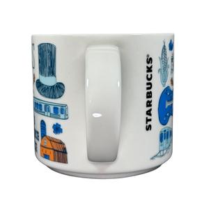"STARBUCKS"is printed vertically on the rear surface near the handle.