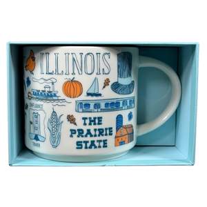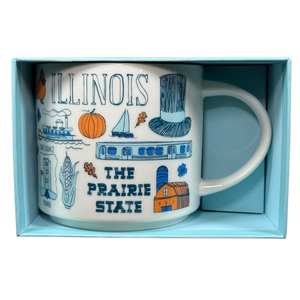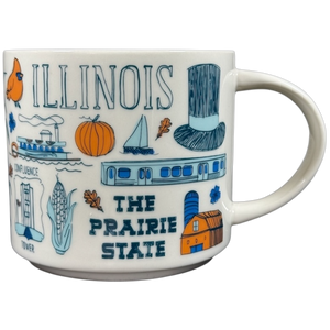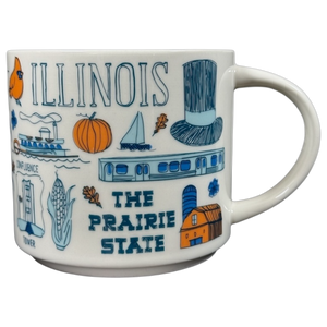 Features images relating to Illinois wrapping around its exterior surface.