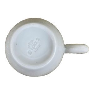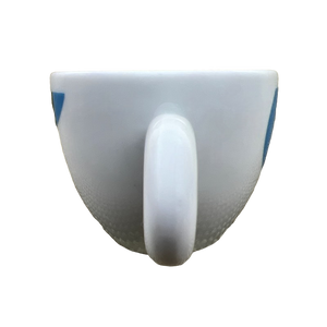 The textured pattern visible on the lower portion of the mug is a reflection of the surface it was photographed on and not actually present on the mug.