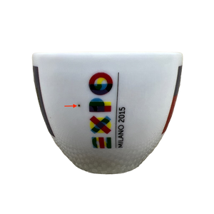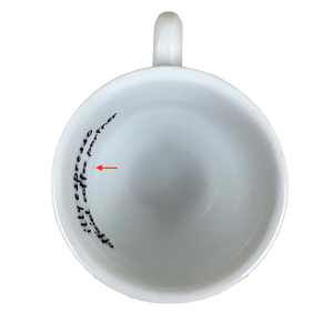 There is a dark dot present inside this mug under the "official coffee partner" text, please see the red arrow pointing to this in the 5th photo.