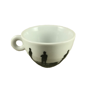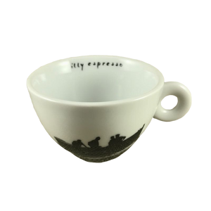Super rare Illy Espresso mug with men in a boat and others on a beach on its exterior suirface.