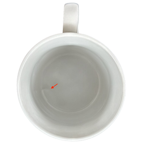 There is one larger pinhole from the manufacturing process on the top of the handle where it meets the body of the mug, please see the red arrow pointing to this in the last photo.