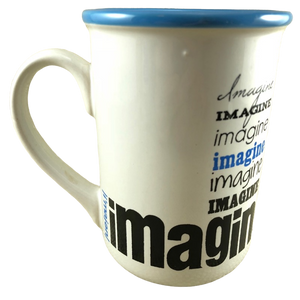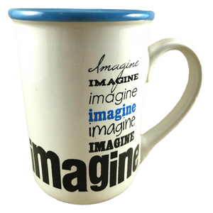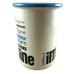 Features the same artwork on the front and rear surfaces consisting of the word imagine written in a very large font on the lower surface. Above this the same word is written in 6 different smaller fonts.