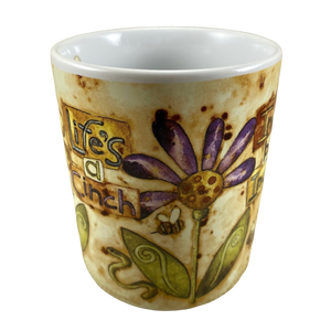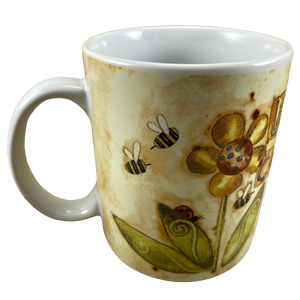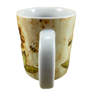 Features artwork wrapping around its exterior surface consisting of flowers and bees.