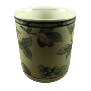 Features various fruits on branches wrapping around its exterior surface.