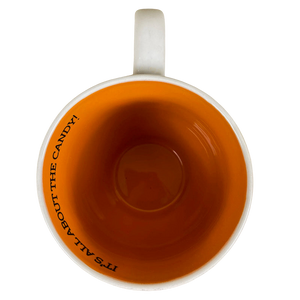 Printed inside on the rear upper surface in a black font: "IT'S ALL ABOUT THE CANDY!"