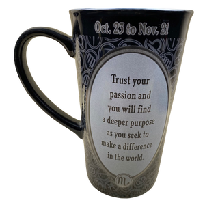 On the rear surface is another embossed oval area with a paragraph about the astrological sign Scorpio.