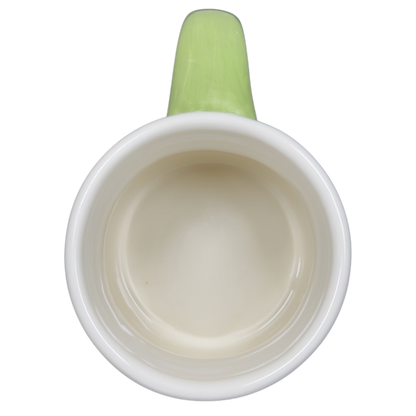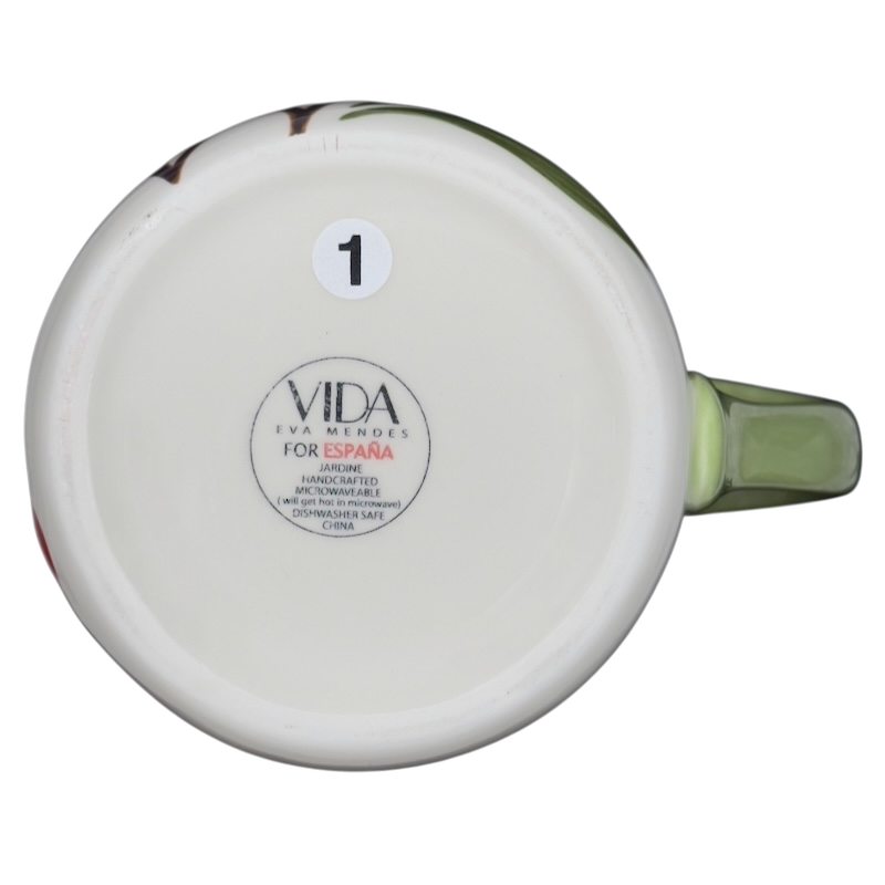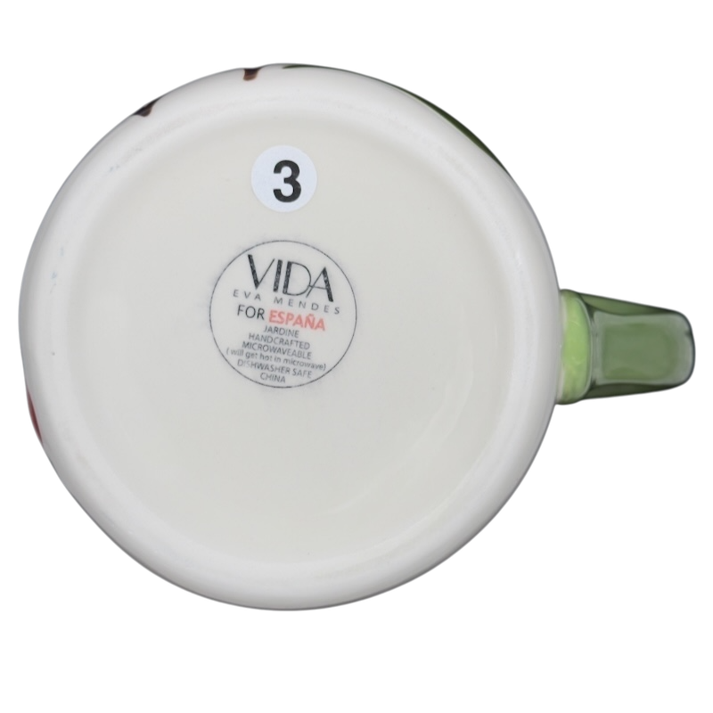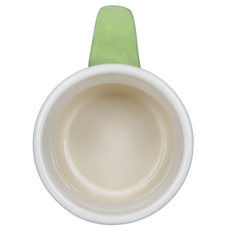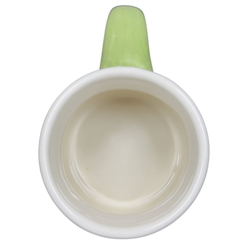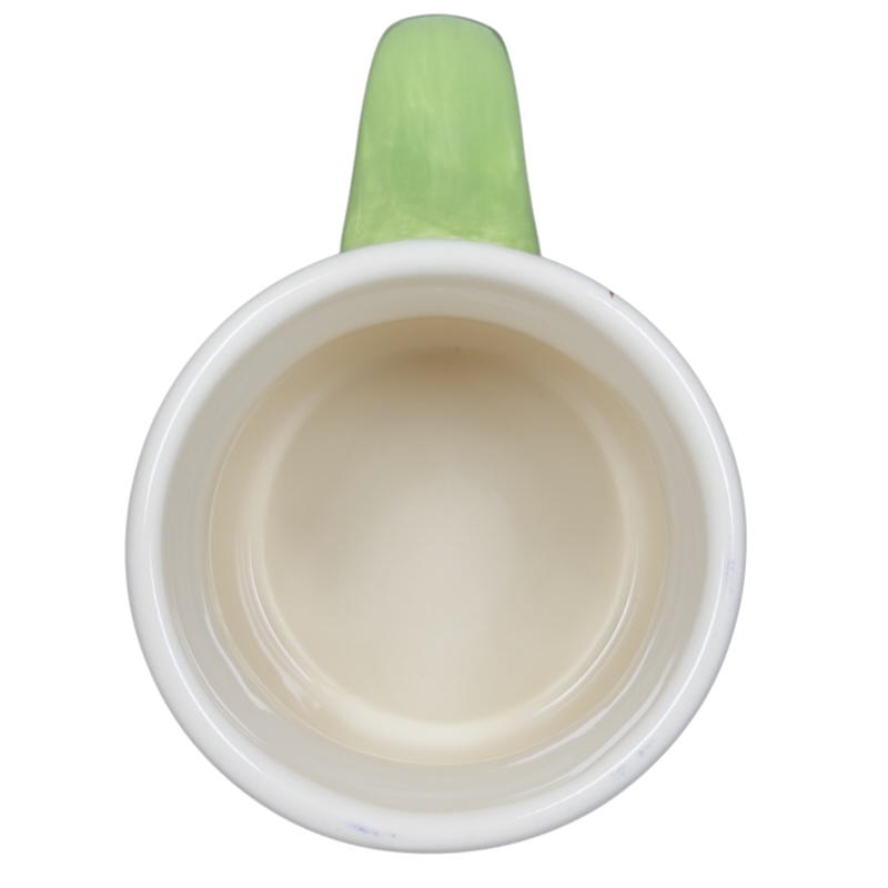 Copy 3: This mug is pre-owned and reconditioned. This mug has no chips, cracks, scratches, stains or crazing. There are some faint dots on the interior bottom surface. These were not captured in the photos. There is some blue paint that was captured within the glaze on the rim, please see the fifth photo.
