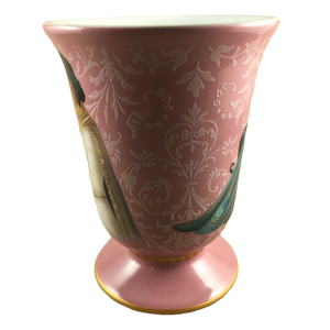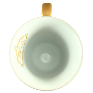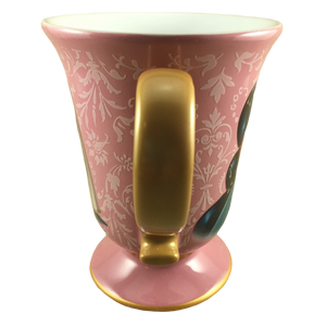 This mug features a gold handle and a pedestal base with matching gold trim.