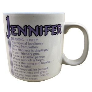 Features the name JENNIFER printed in a large font at the top of the front side of the mug. Directly underneath this is a poem about the name JENNIFER.