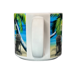 Features the same colorful artwork on its front and rear surface depicting a lounge chair and palm trees in a beach scene.