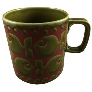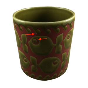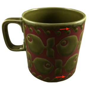 Condition note: there is some fine crazing present on the interior and exterior of this mug. There are some very small imperfections scattered around the exterior surface in the form of white blemishes. I identified several of these with red arrows in the photos, however there are more. Please see the photos to gain an accurate idea of the condition of this mug, which overall is very good.