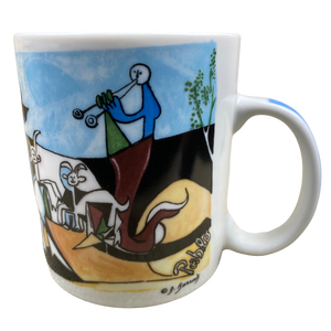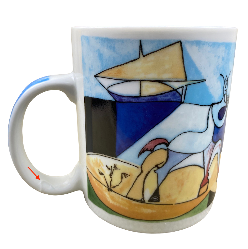"Pablo" is signed diagonally in the front right lower corner of the painting on the front surface of the mug.
