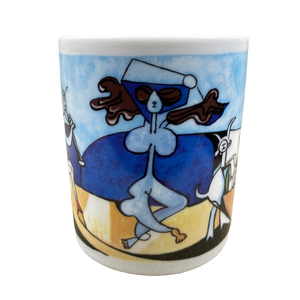 Features the painting "Joie De Vivre" by Pablo Picasso wrapping around its exterior surface and on the handle.