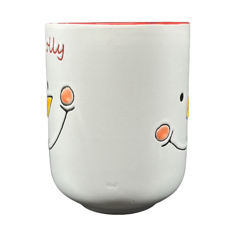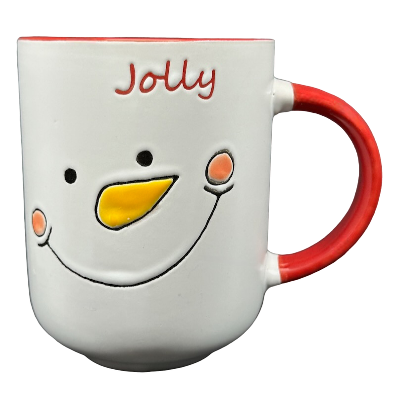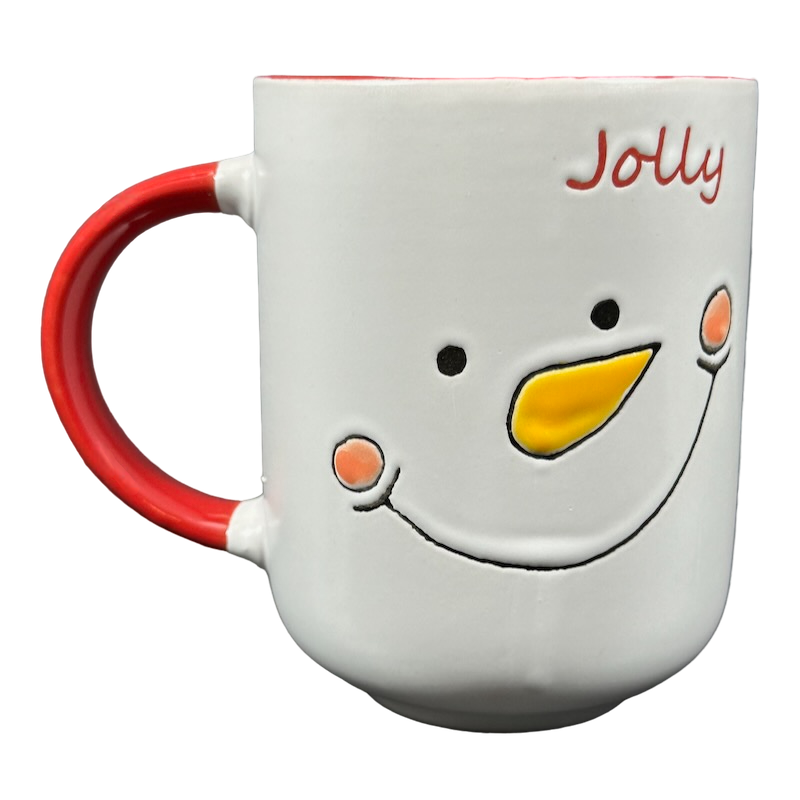 "Jolly" is lightly etched above the snowman.