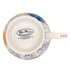 This mug features lightly embossed floral artwork wrapping around its exterior surface.