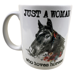 Printed above the horse is "JUST A WOMAN."