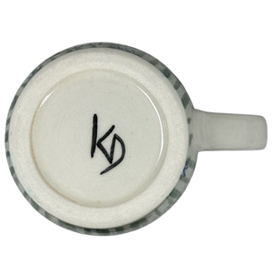 This mug is hand painted by Karen Donleavy and is signed KD on the bottom surface.