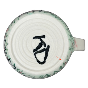 This mug is hand painted by Karen Donleavy and is signed KD on the bottom surface.