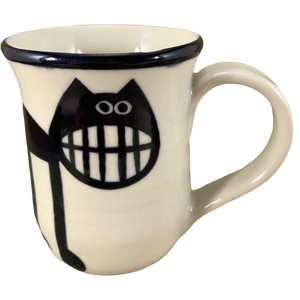 Features a smiling black cat on its exterior surface.