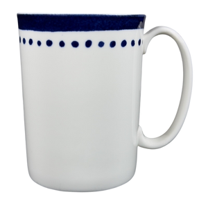Features a thick border of blue trim wrapping around its exterior surface below the rim.