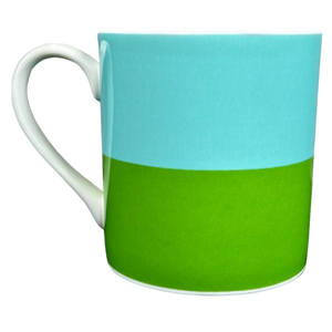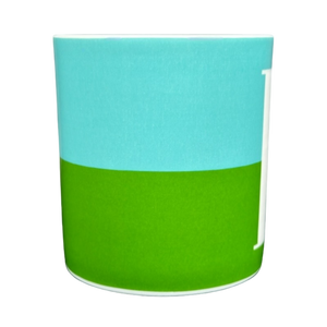 Features a green band wrapping around its lower half and a blue band wrapping around its upper half.