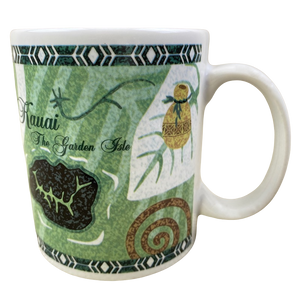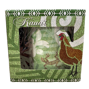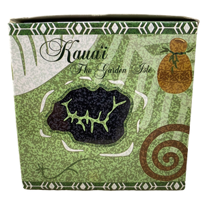 Features images relating to Kaua'i wrapping around its exterior surface.