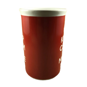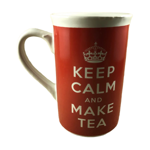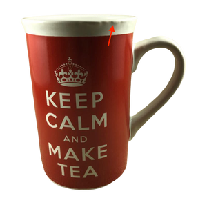 Features the same artwork on the front and rear surface consisting of a crown wiith "KEEP CALM AND MAKE TEA" printed beneath it.