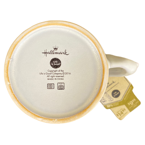 There is a first and last name on the front of the hang tag. I edited out the last name on the tag in the 2nd to last image but it will be present on the tag to the right of the first name in the same blue pen font when you receive this mug.