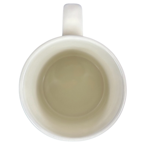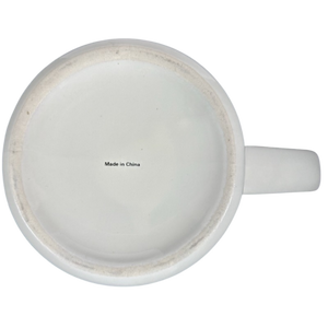 Printed on the back of this mug within a black oval is: