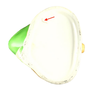 Condition note: there is wear present on the bottom rim and a bit of ceramic material on the bottom surface that is raised. Please have a look at last photo to see the wear and a red arrow pointing to the raised ceramic material.