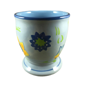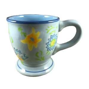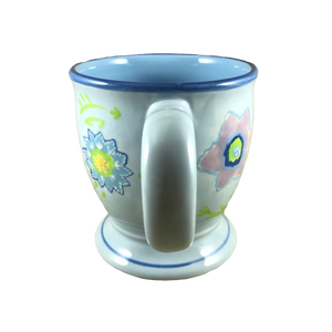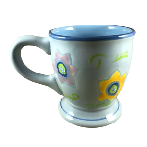 Features uniquely styled flowers encircling the exterior surface of this mug.