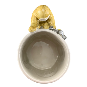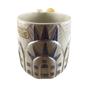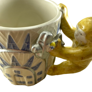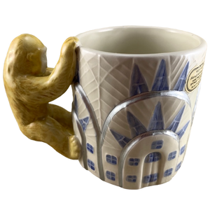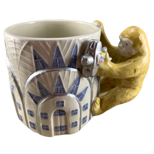 This mug features a 3D design with King Kong hanging off the side of a building with an airplane in one of his hands.