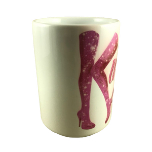 Has "Kinky Boots The Musical" on one side. The letter K in Kinky is made up of a pair of legs.