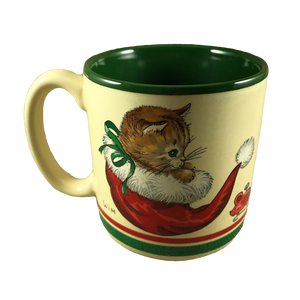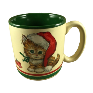 Features an adorable kitten in 2 different scenes, 1 each on the front and the back of the mug.