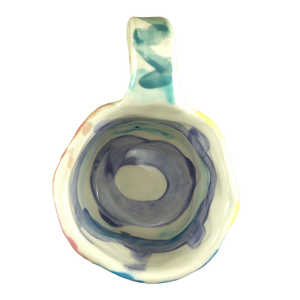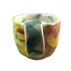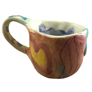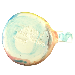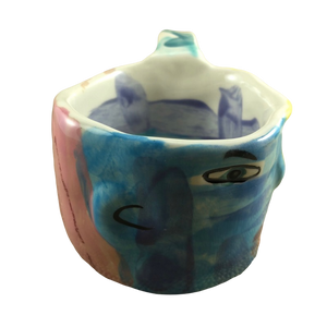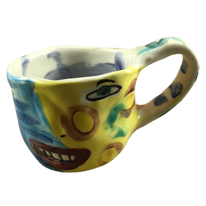 This is an extremely rare and unique hand made pottery mug from the studio of Laurel Izard and Edwin Shelton in Chicago.