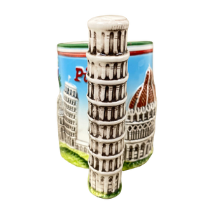 The handle of this mug is shaped like the Leaning Tower of Pisa.