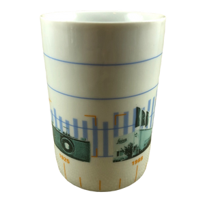 Features a timeline of important Leica dates wrapping around its exterior surface.