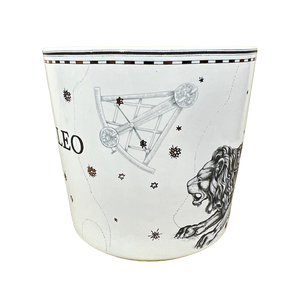 Features artwork wrapping around its exterior surface relating to the zodiac sign LEO.