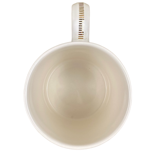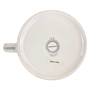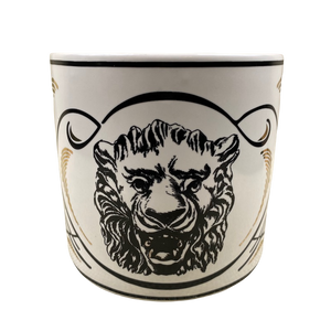 This oversized mug features an illustration of a lion on the exterior surface opposite the handle.