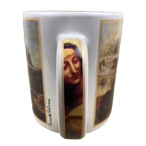 Features the painting "Mona Lisa" on its front surface and the painting "The Virgin and Child with Saint Anne" on its rear surface.