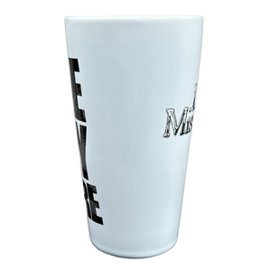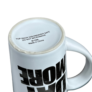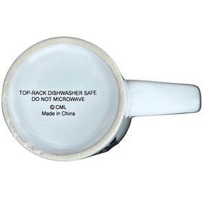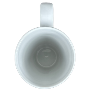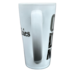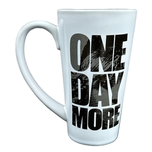 This is a very tall mug with the following printed on its front surface in a unique font: