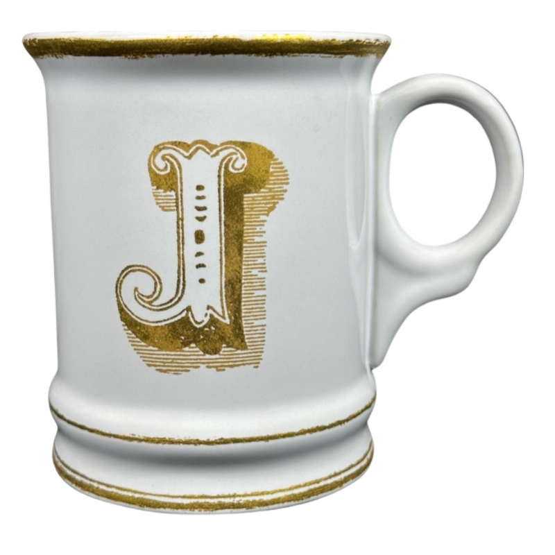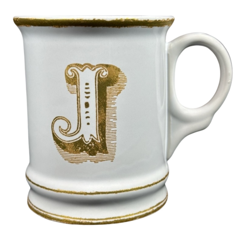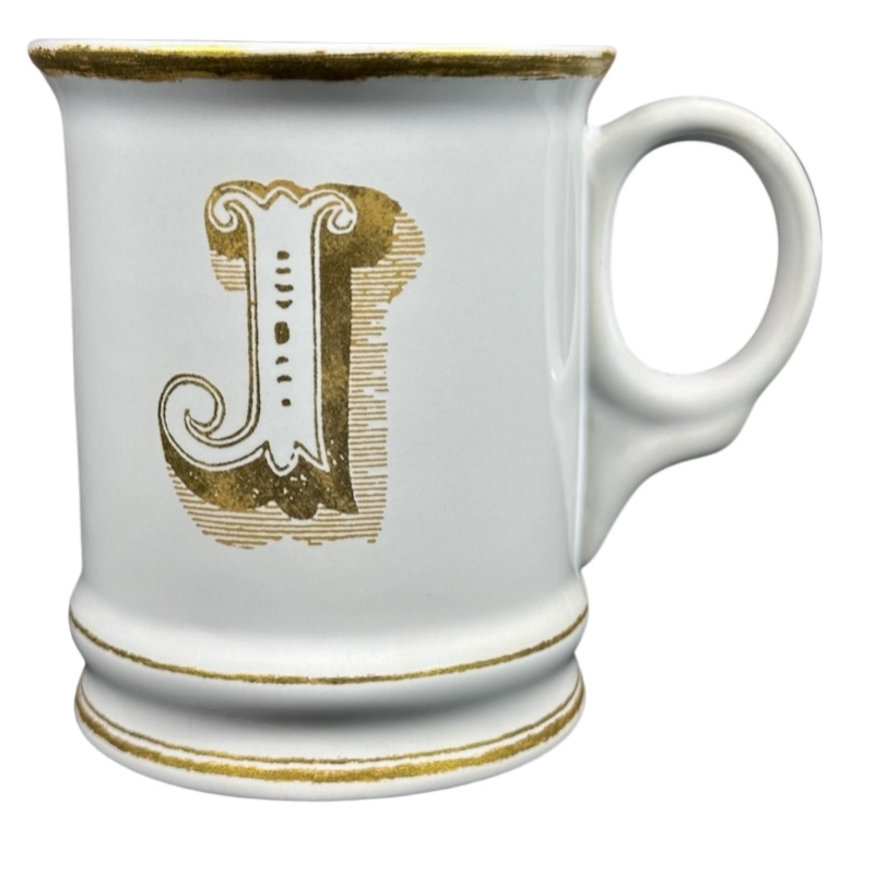 Features artwork on the front that depicts a large letter "J" printed in gold.