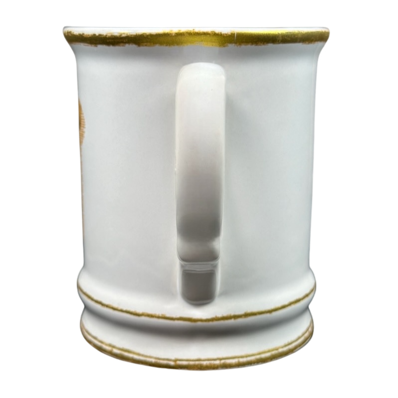 Please note the gold trim and graphics vary on each copy. Please look carefully at the photos to see the actual mug you will receive.
