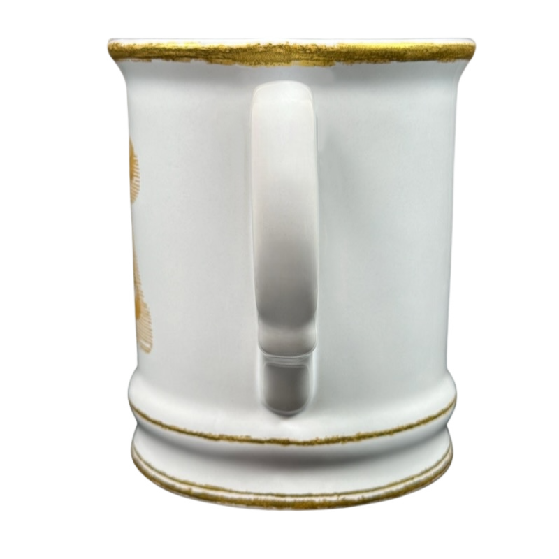 Please note the gold trim and graphics vary on each copy. Please look carefully at the photos to see the actual mug you will receive.
